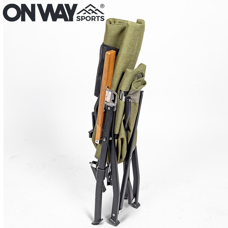 The seat is made of 20A Canvas fabric, ensuring durability and comfort. The frame is constructed with all aluminum tubes, providing stability and strength. What's more, the black walnut armrests add a touch of elegance and comfort.